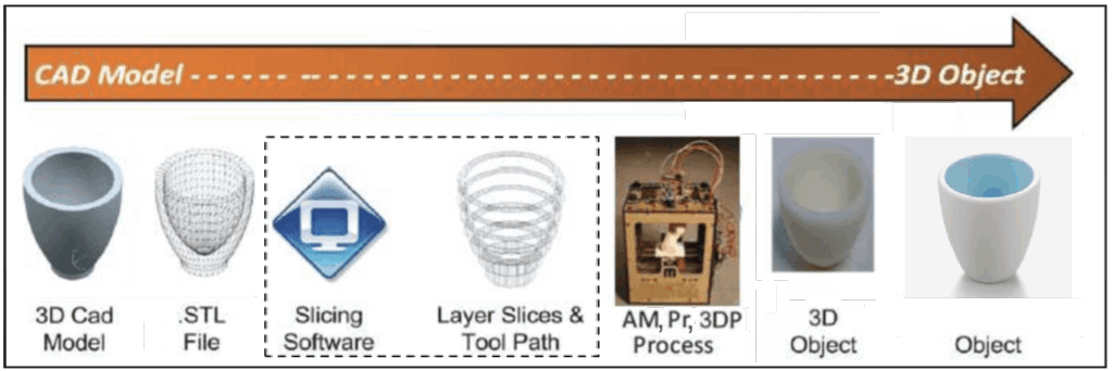 Na aula anterior vimos um fluxo geral que atende às necessidades das nossas 3 áreas de atuação: Manufatura AditivaPrototipagem Rápida e Impressão 3D. Também vimos 3 fluxos de outros autores dentro de diferentes temáticas e aplicações que são muito similares. No entanto, necessitamos entender que há diferenças entre as áreas e que por mais que os nomes sejam “sinônimos” devemos tratar as áreas respeitando as diferenças. Vejamos a imagem do fluxo geral para relembrar.