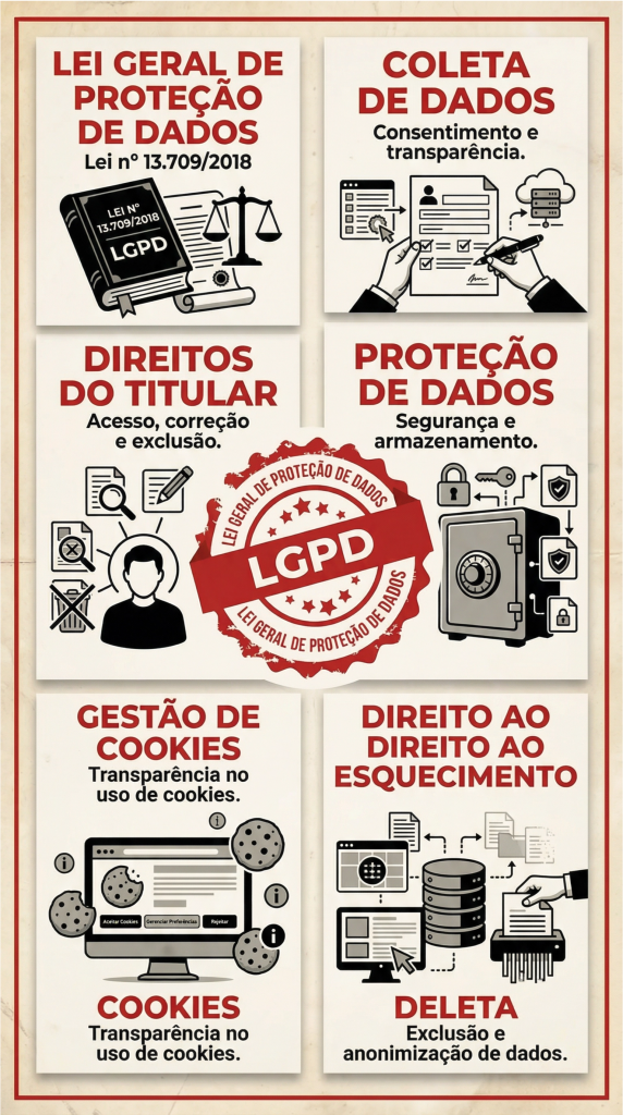 Em resumo, a LGPD estabelece que o titular dos dados é o verdadeiro “dono” de suas informações pessoais, e as empresas e órgãos públicos são responsáveis por garantir que o uso desses dados respeite a legislação e os direitos do cidadão.