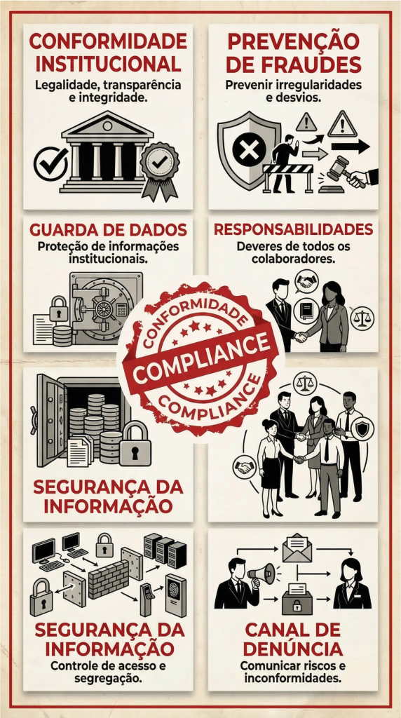 Questões relacionadas à conformidade, ética e uso de informações institucionais podem ser encaminhadas ao canal oficial: